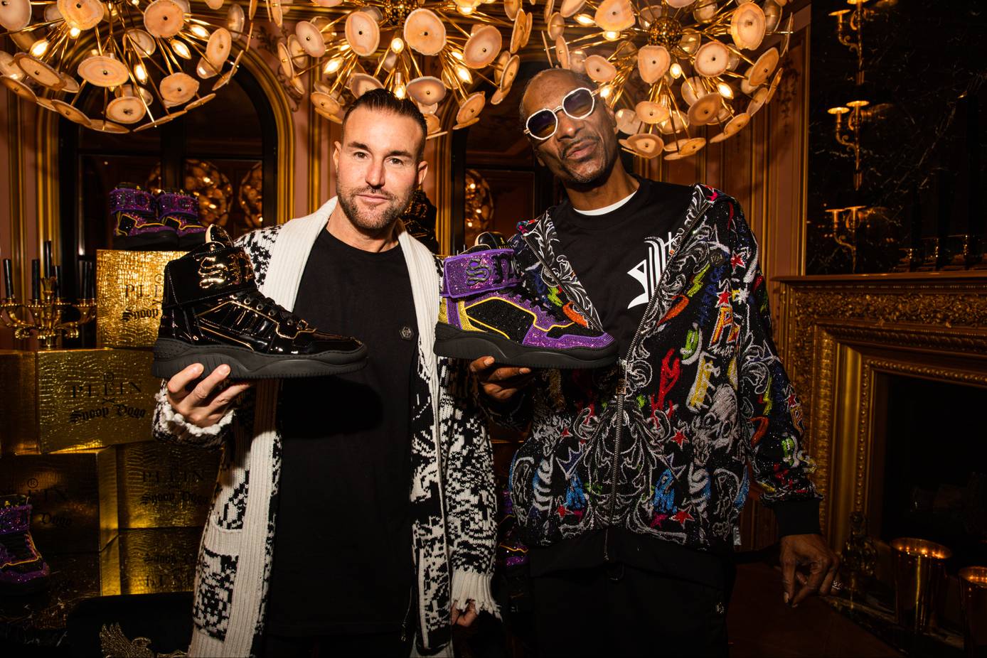German fashion designer Philipp Plein has just announced #PleinDogg, a sneaker collaboration with Snoop Dogg. Inspired by Snoop Dogg’s unique music style, Plein created a sneaker that represents both his singular brand look and the “Doggy Style.” The collection features two sneakers, a sleek black-and-gold hightop, and a bedazzled black and purple hightop. Check out the fashion-music collab here.